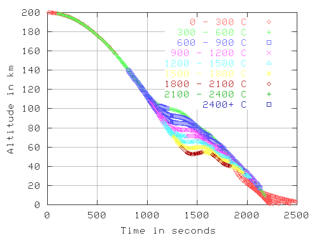 Our reentry simulations indicate we can keep the SSTT under 900 degrees C all the time. This is because the rocket is suborbital, small, and lightweight. Compared to shuttle reentry we will have much lower temperatures (about 900 C compared to 1650 C) and for much shorter time (about 2 min compared to 20 min).