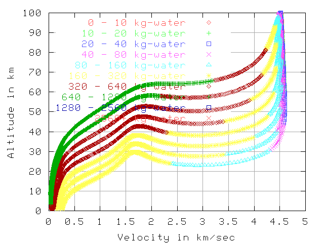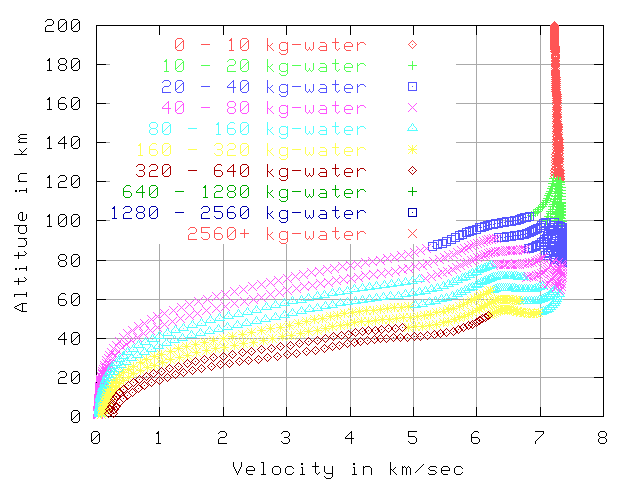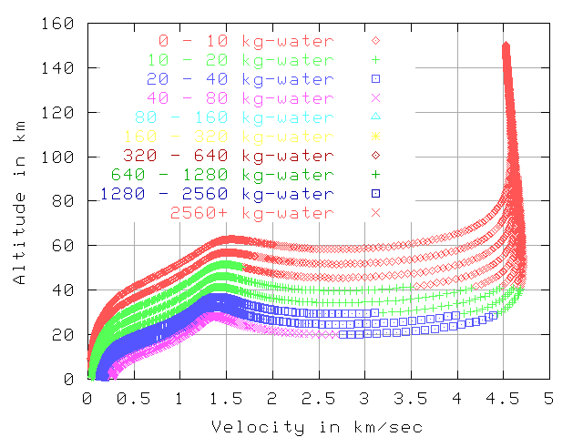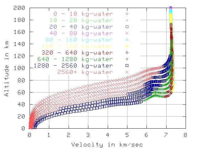 These graphs don't take into account how much this layer of relatively cool steam will reduce the amount of heat reaching the vehicle. This effect will reduce the amount of water needed by a factor of 3 or 4.
